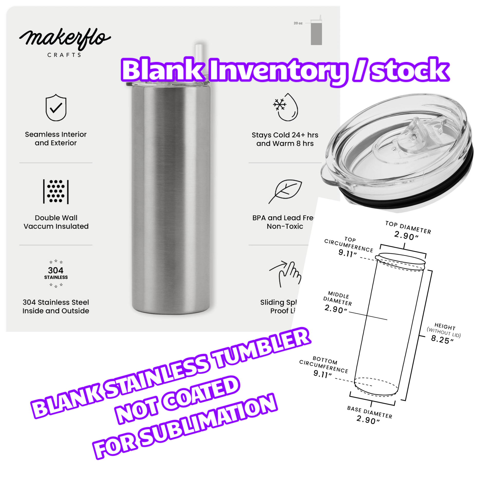 Downsizing my blank tumbler inventory. These are plain stainless steel tumblers. Brand new, never used, still in box. BOXES MAY BE DAMAGED / dusty