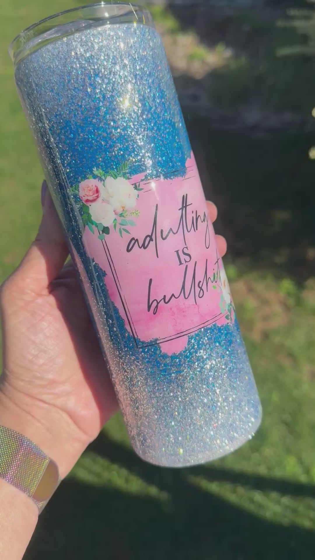 Adulting Is Bullshit” Glitter Tumbler – 20oz ✨