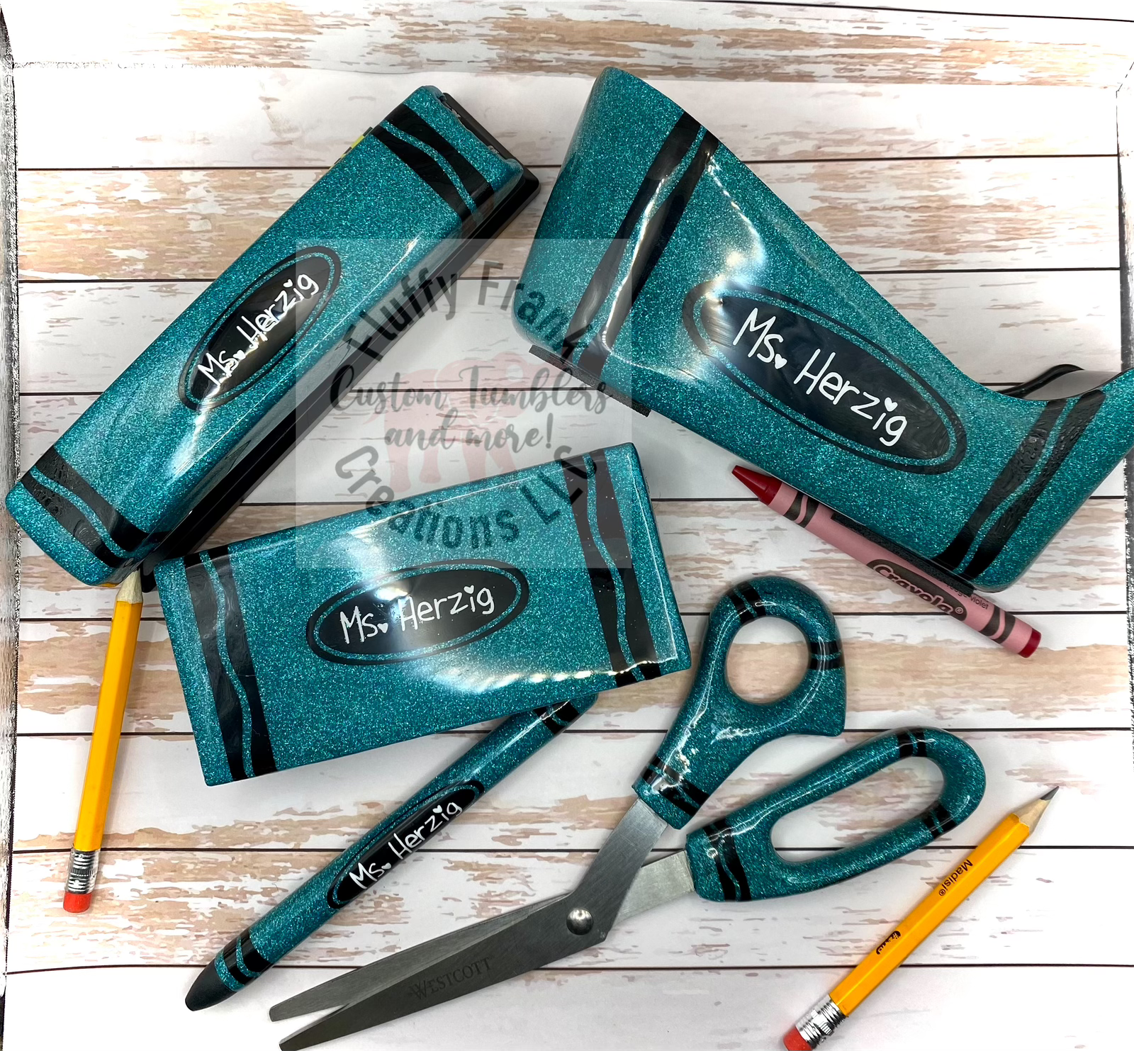 When you opt for the complete Crayon-Inspired Desk Set, you not only receive all the essential items but also benefit from a special discount. This comprehensive set ensures that teachers have all the tools they need in one cohesive package, fostering convenience and efficiency in their day-to-day activities.