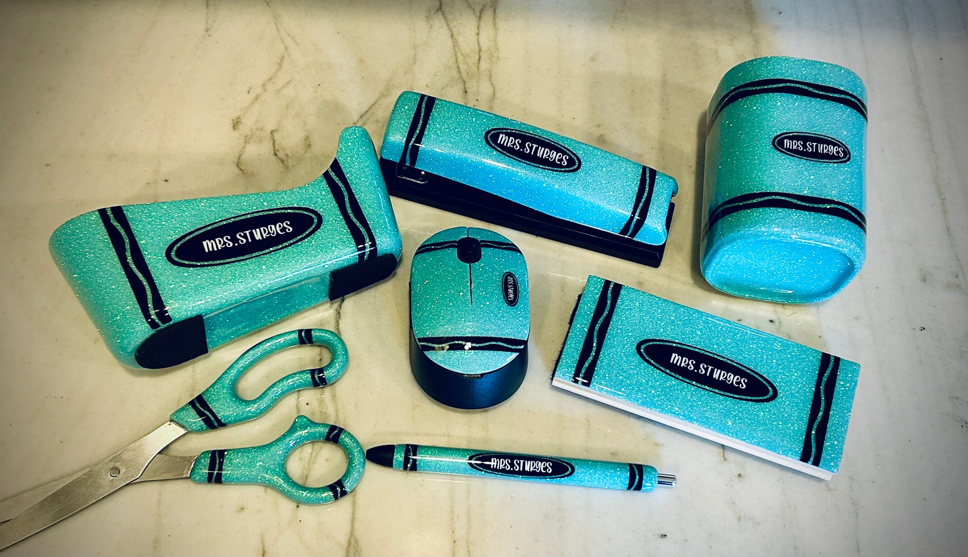 Crayon themed desk items
