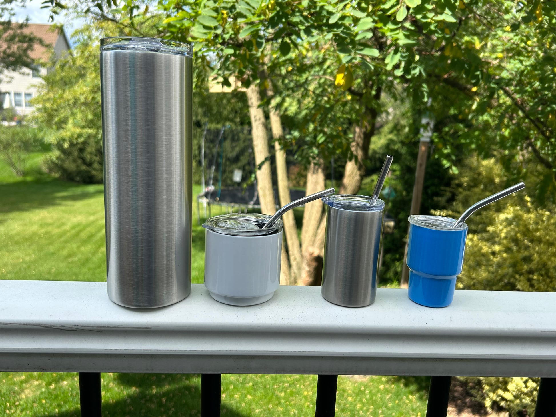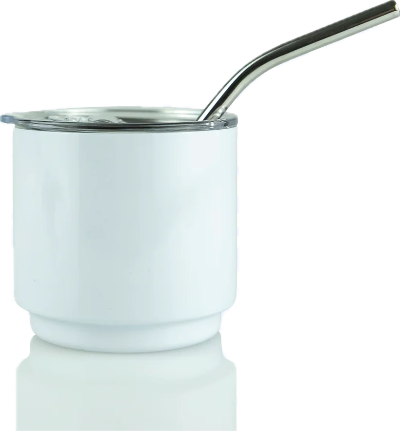 Stay caffeinated on-the-go with this chic one-of-a-kind 4oz double-walled stainless steel cup! Perfect for espresso, cordials, and egg nog, it comes with a sliding lid and stainless straw - plus you can customize it with a design of your choice. Drink up - cheers!