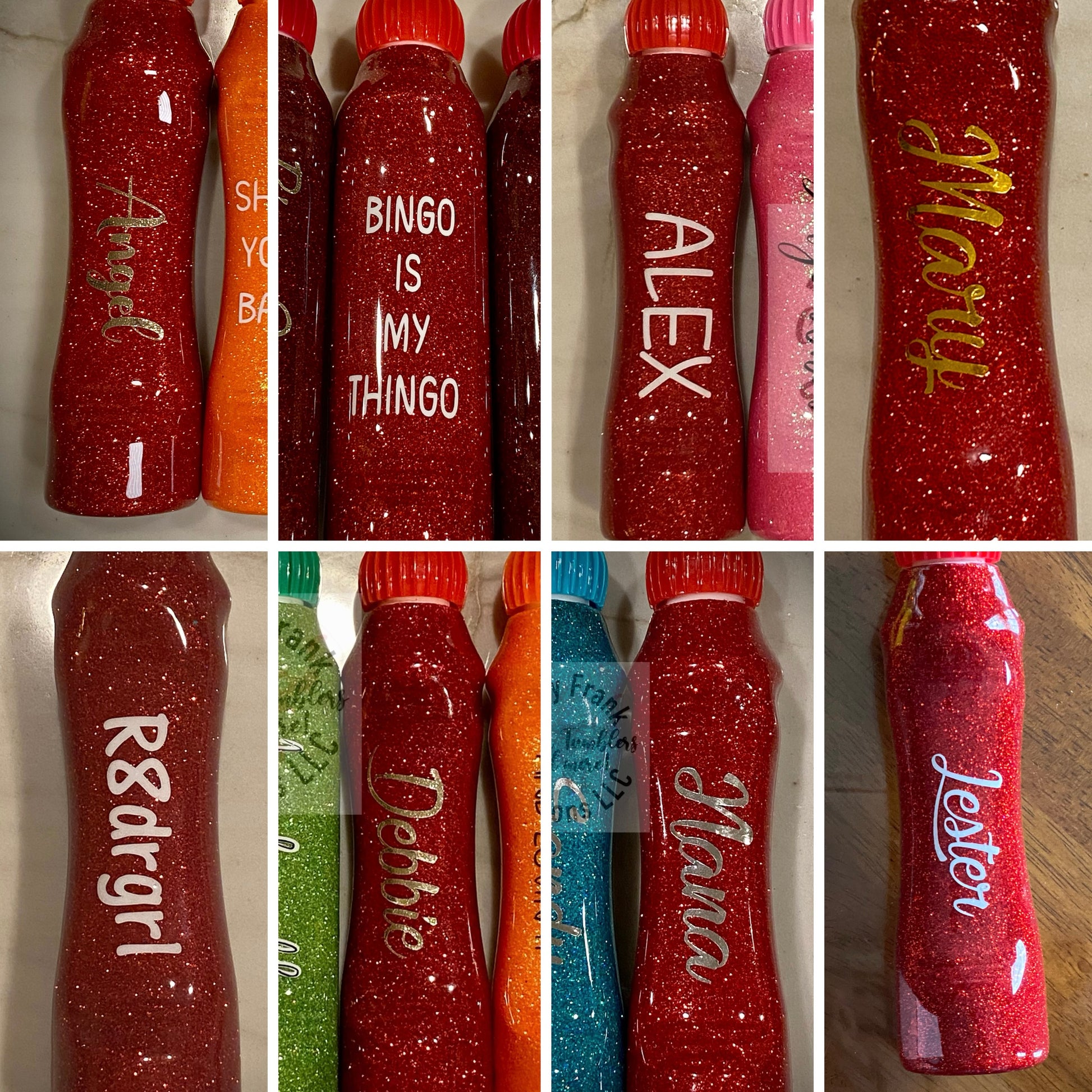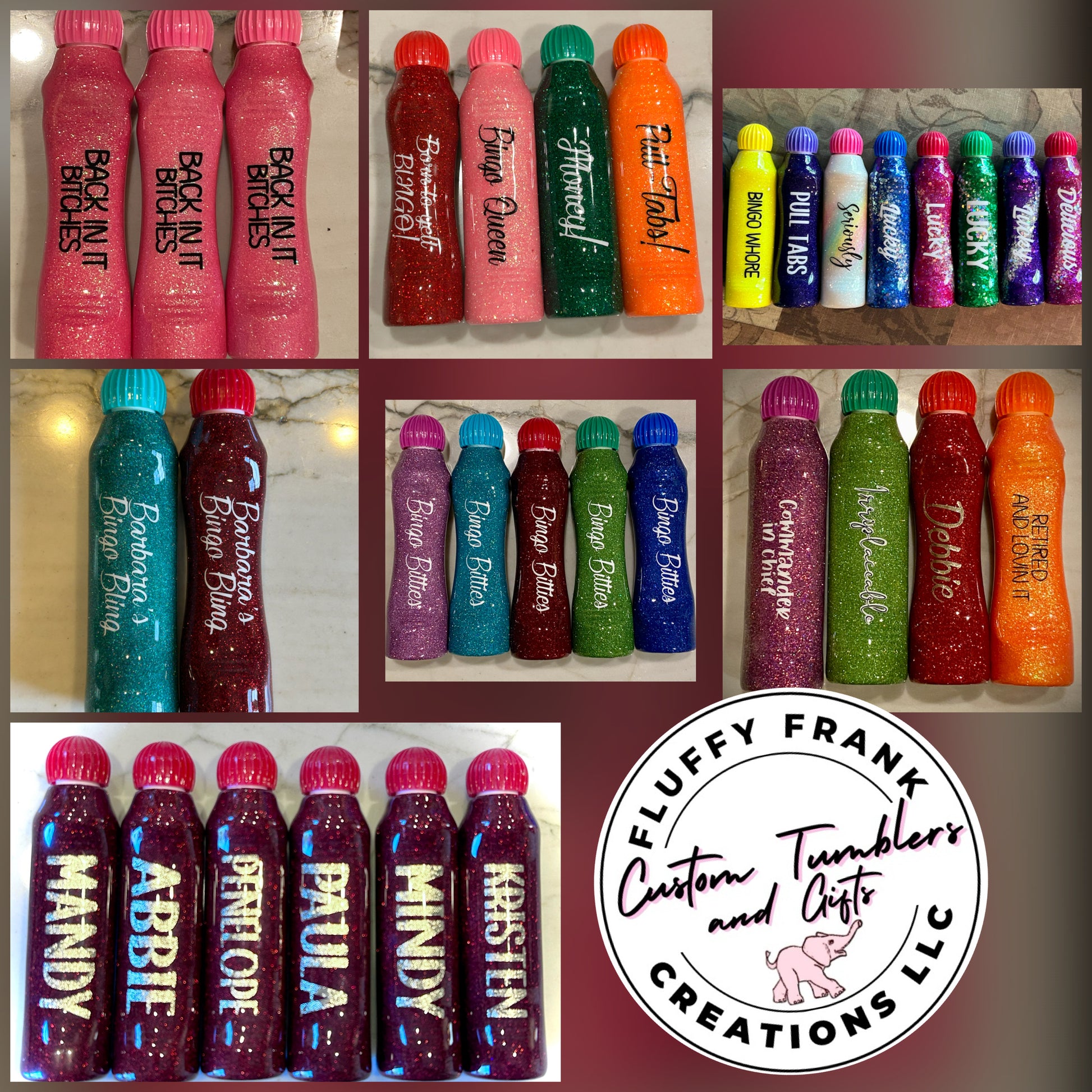 each one is hand glittered in color of your choice!! Choose a funny saying (examples pictured or create your own) or add your name!! Customizable on BOTH sides!!!