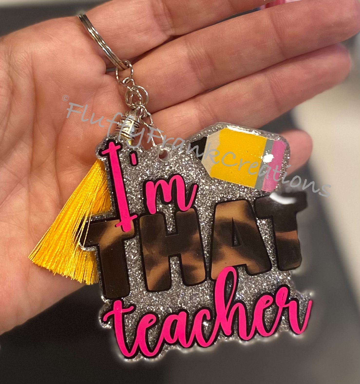 Emblazoned with the unapologetic phrase “I’m That Teacher,” this keychain is a sassy declaration of your teaching prowess. It’s a reminder that you’re not just any run-of-the-mill educator – you’re the one who adds a touch of pizzazz to lesson plans, inspires students, and commands attention with your unmatched charisma.