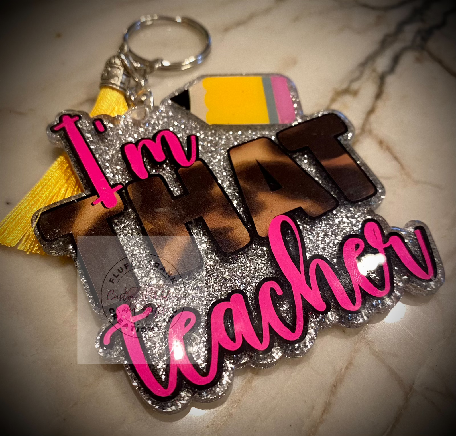 Introducing our sass-tastic “I’m That Teacher” Acrylic Keychain, the ultimate accessory for educators who radiate confidence and style in and out of the classroom. This keychain is here to proclaim to the world, “Yep, I’m that teacher, and I rock it!”