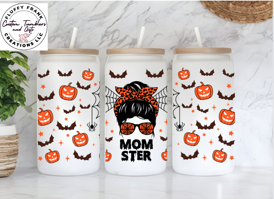 Celebrate the spooky season with our Momster Halloween Can Glass, perfect for moms juggling the joys and challenges of raising kids! This fun and festive glass features a playful design with bats, pumpkins, and the bold phrase “MOMSTER,” accented by a stylish hair bun with leopard print ears. It’s the ideal drinkware for moms who embrace the Halloween spirit while managing their little monsters.