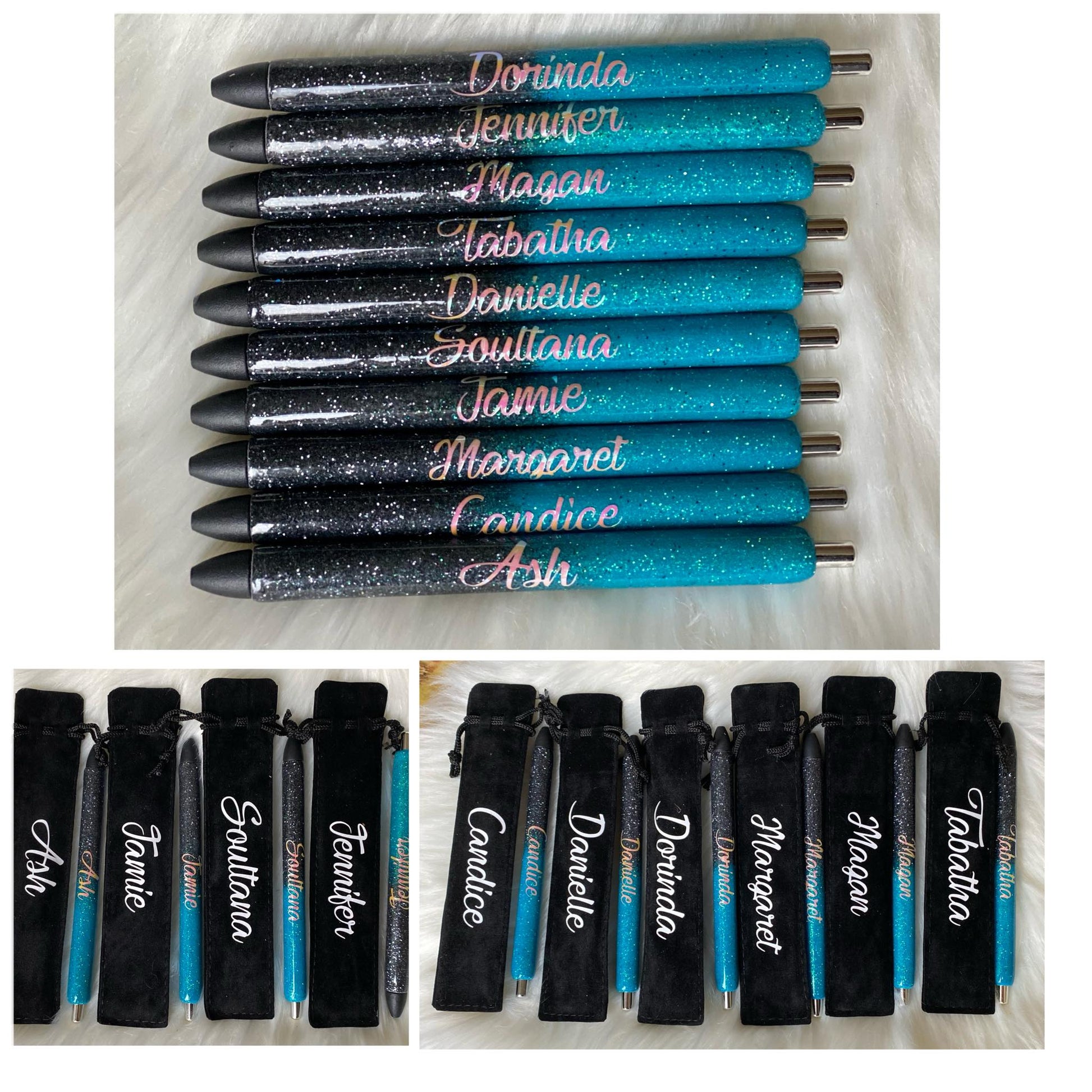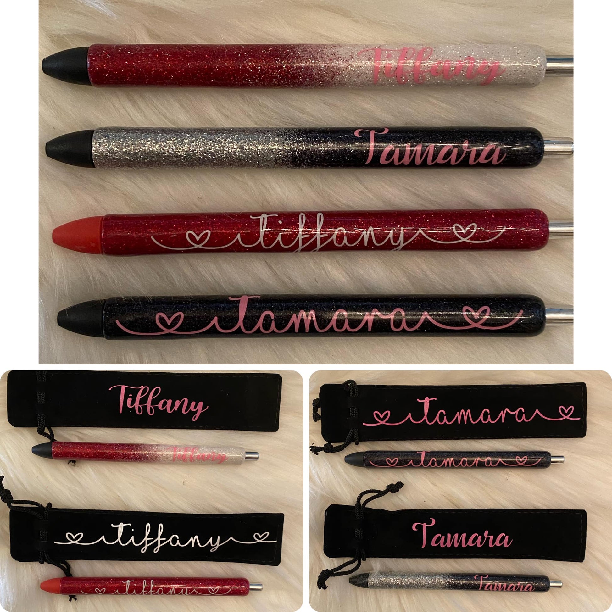 Perfect for teachers, nurses or office workers!! Never have anyone steal your pen again!! Black or blue ink available. Each pen comes with a plain velvet pouch and one refill. (If you choose personalized, pouch will have name on it) I offer over 200 different color glitters. .