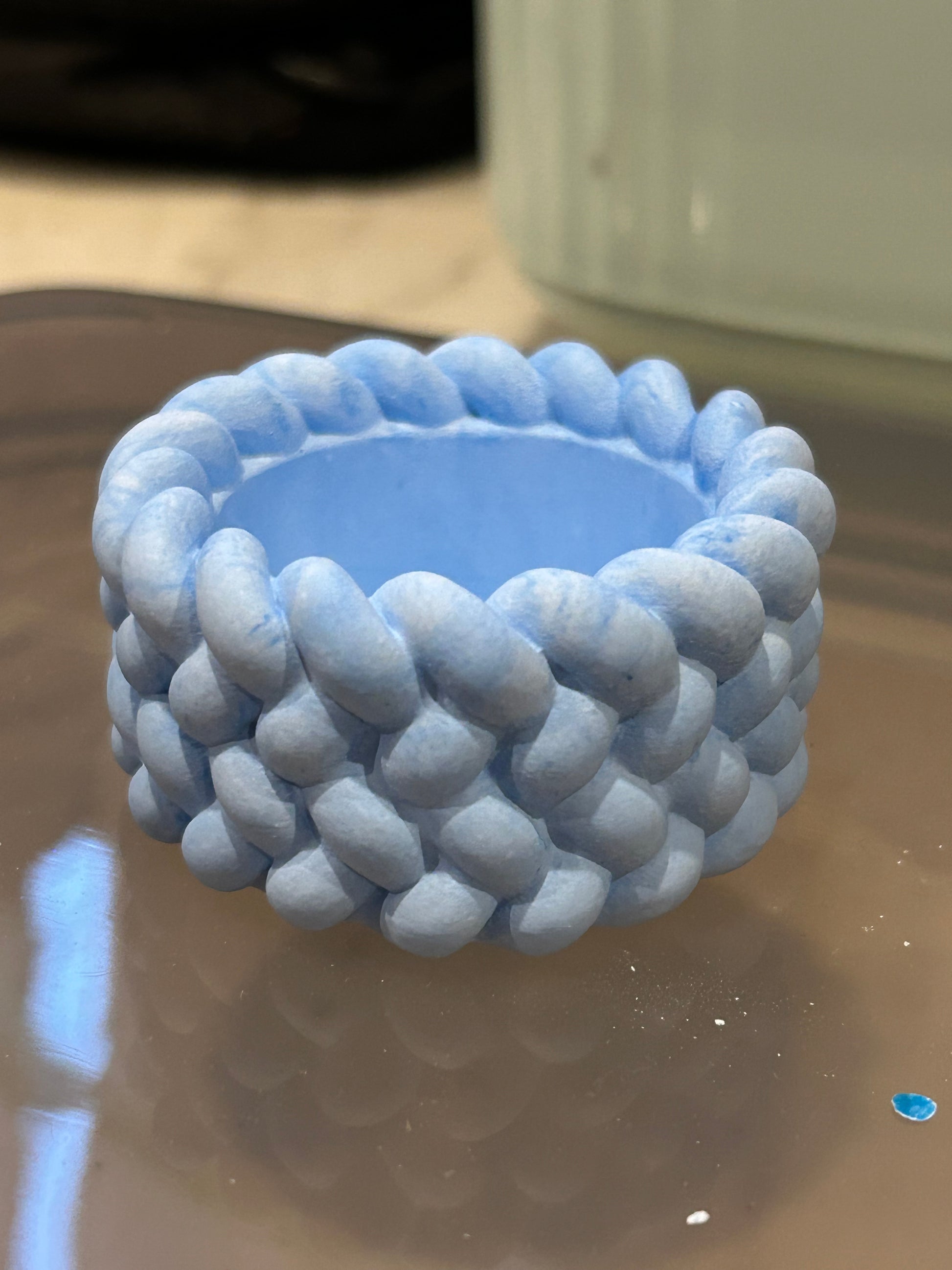 Each tea light holder is made to order and meticulously hand-poured, ensuring that every piece is unique. The intricate woven design is carefully crafted to create a captivating interplay of light and shadow, enhancing the warm glow of your tea lights. The pastel matte finish adds a soft, velvety touch, making these holders a delightful addition to any interior.