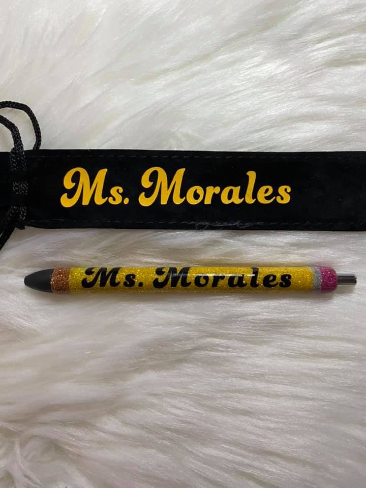 Perfect for teachers, nurses or office workers!! Never have anyone steal your pen again!! Black ink. Each pen comes with a velvet pouch and one refill.