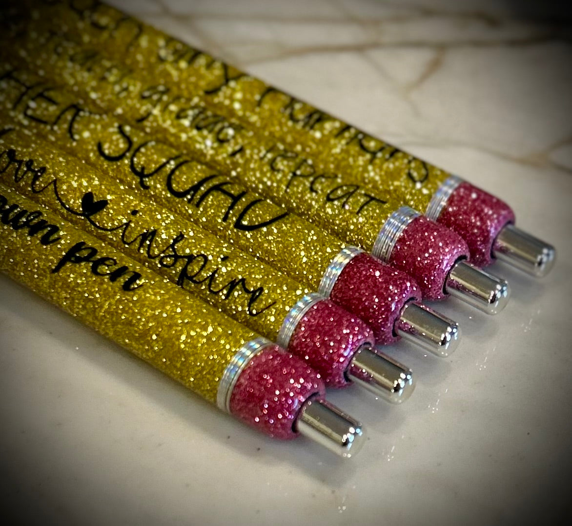 ** Disclaimer - if your order contains a non-glitter item, we cannot guarantee that your item will be 100% free from glitter. This is ESPECIALLY TRUE with all black pens. Although we try REALLY hard and have separate work areas for glitter and non-glitter items, a piece or two may sneak onto your item. This is beyond our control.