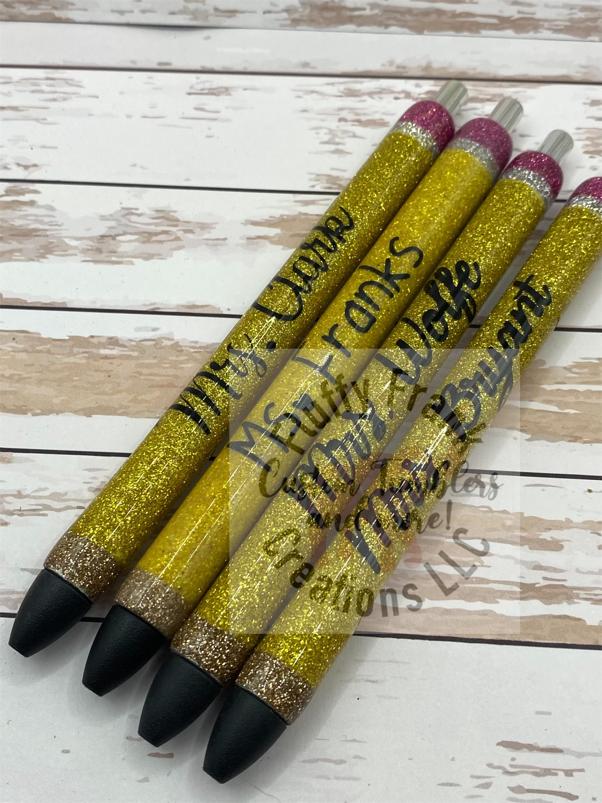 Tips of pens represent color of ink. I cannot epoxy/glitter over tip of pen