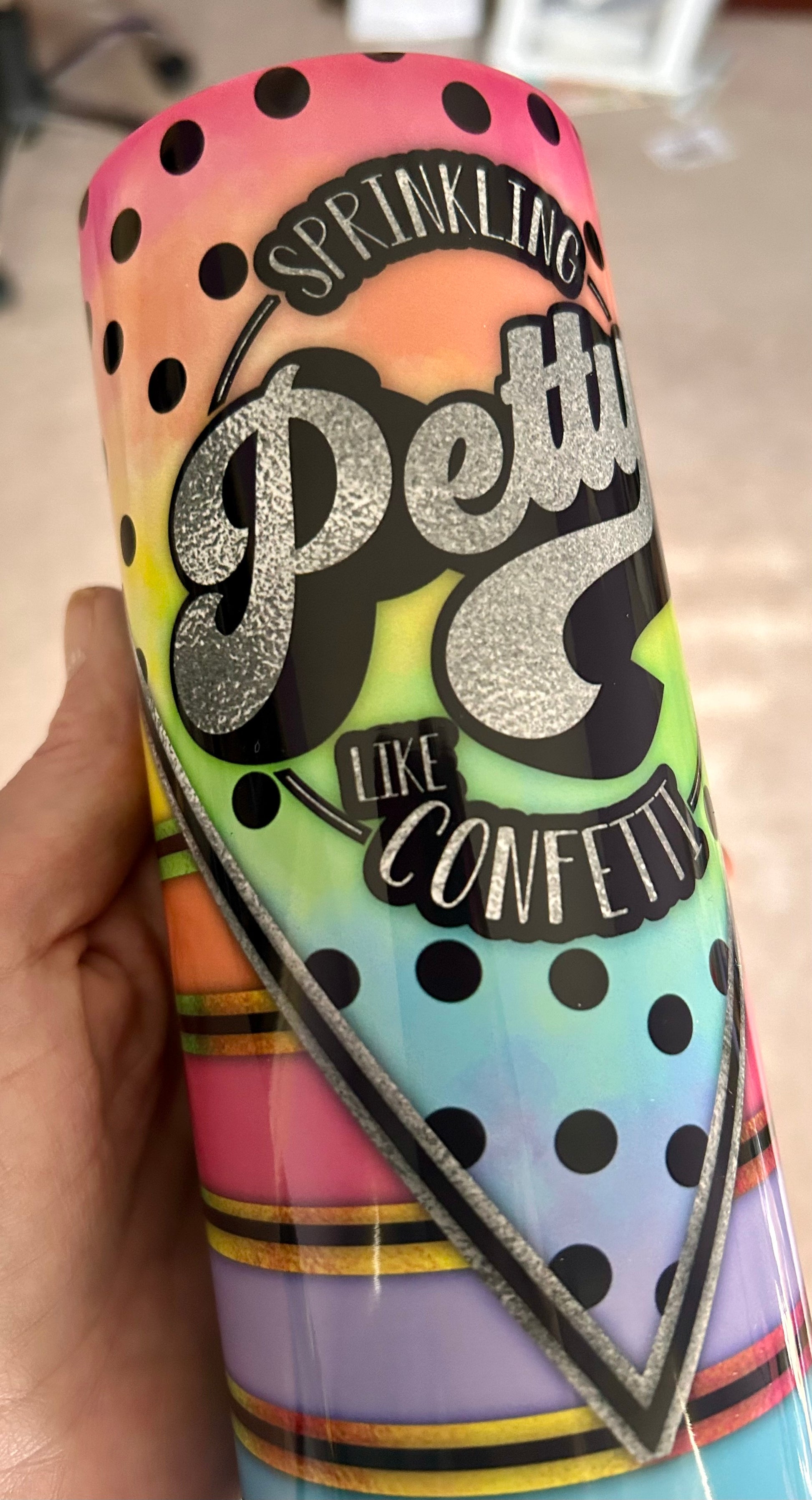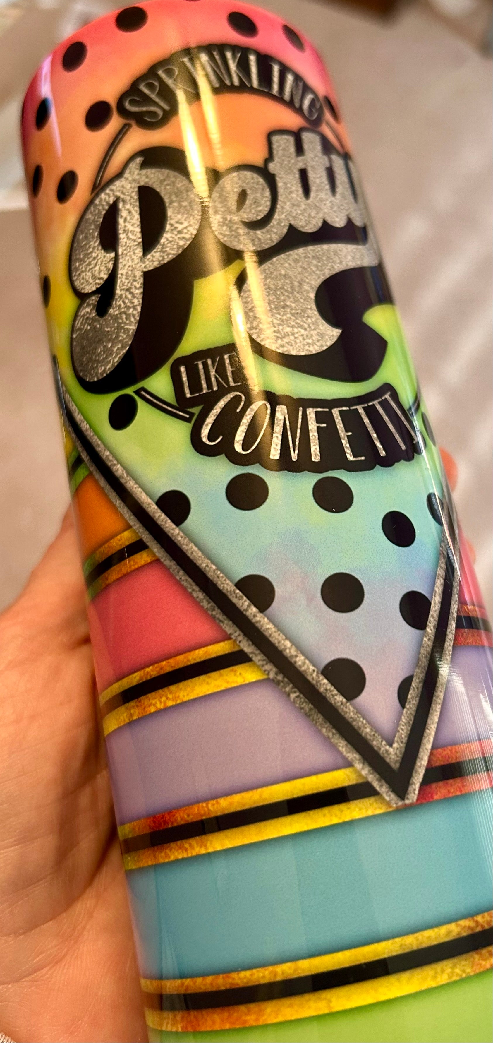 Perfect for those who love to add a splash of color to their day, our tumbler is sure to turn heads and start conversations. Get yours and start ‘sprinkling petty like confetti’!