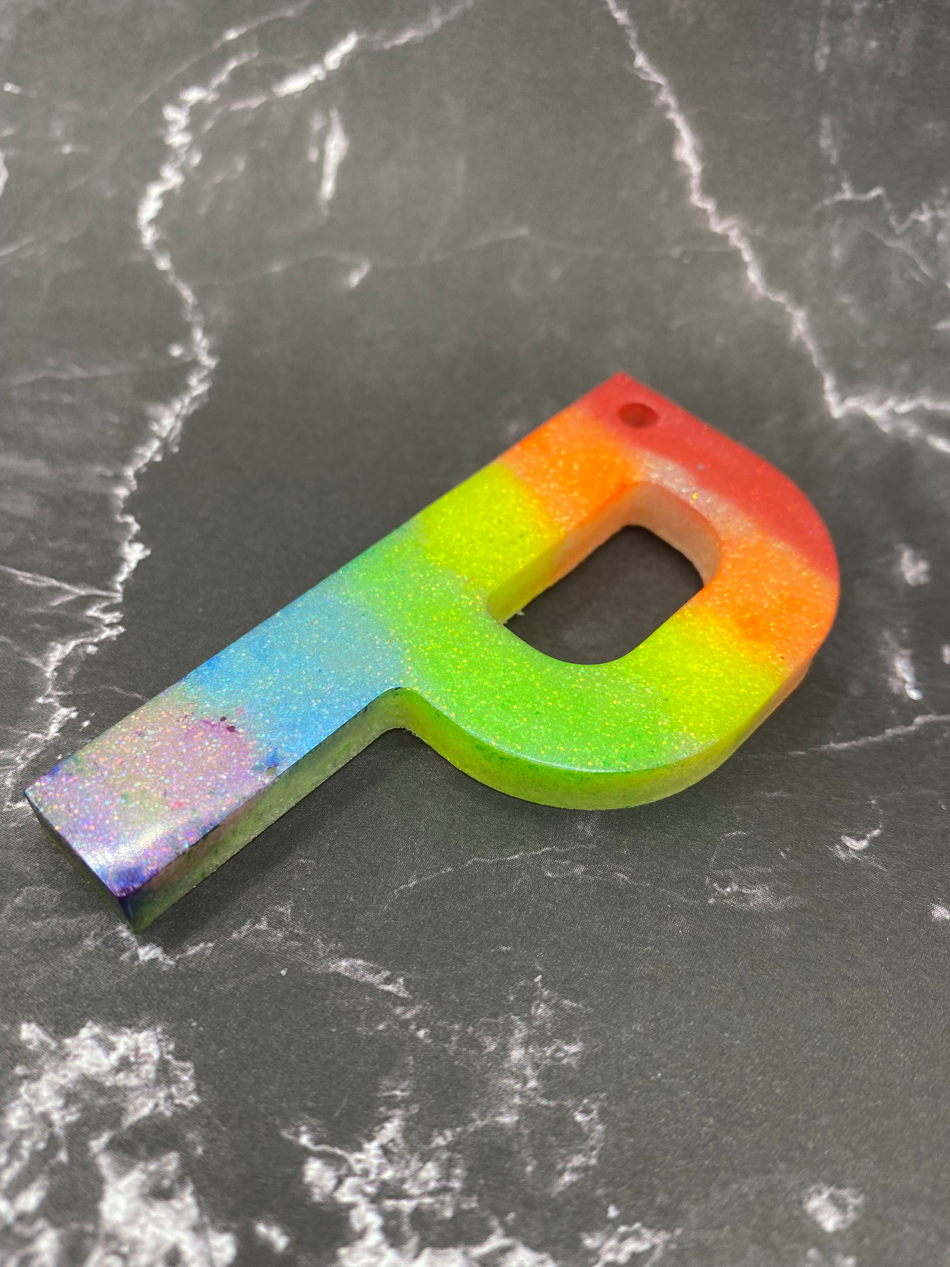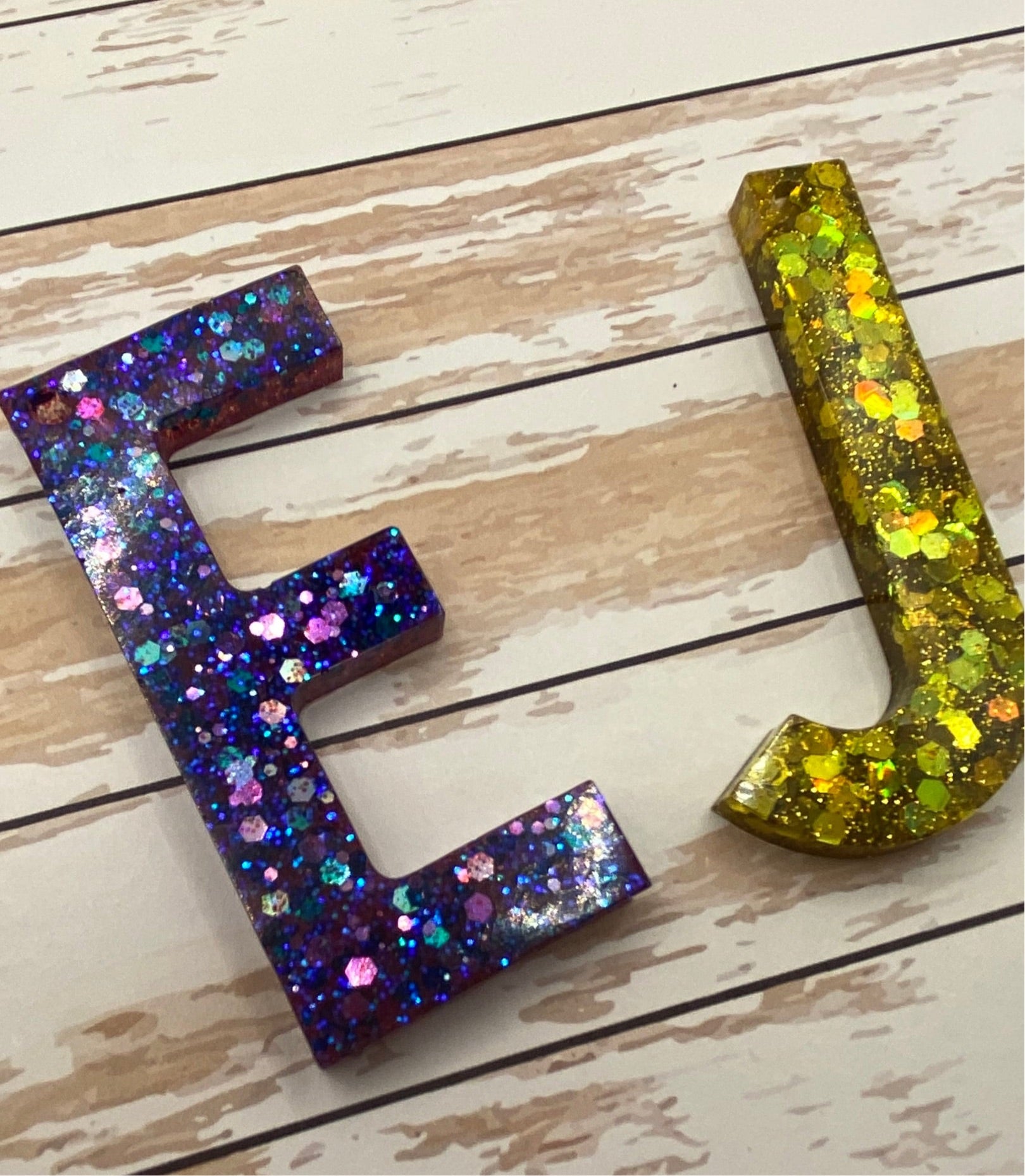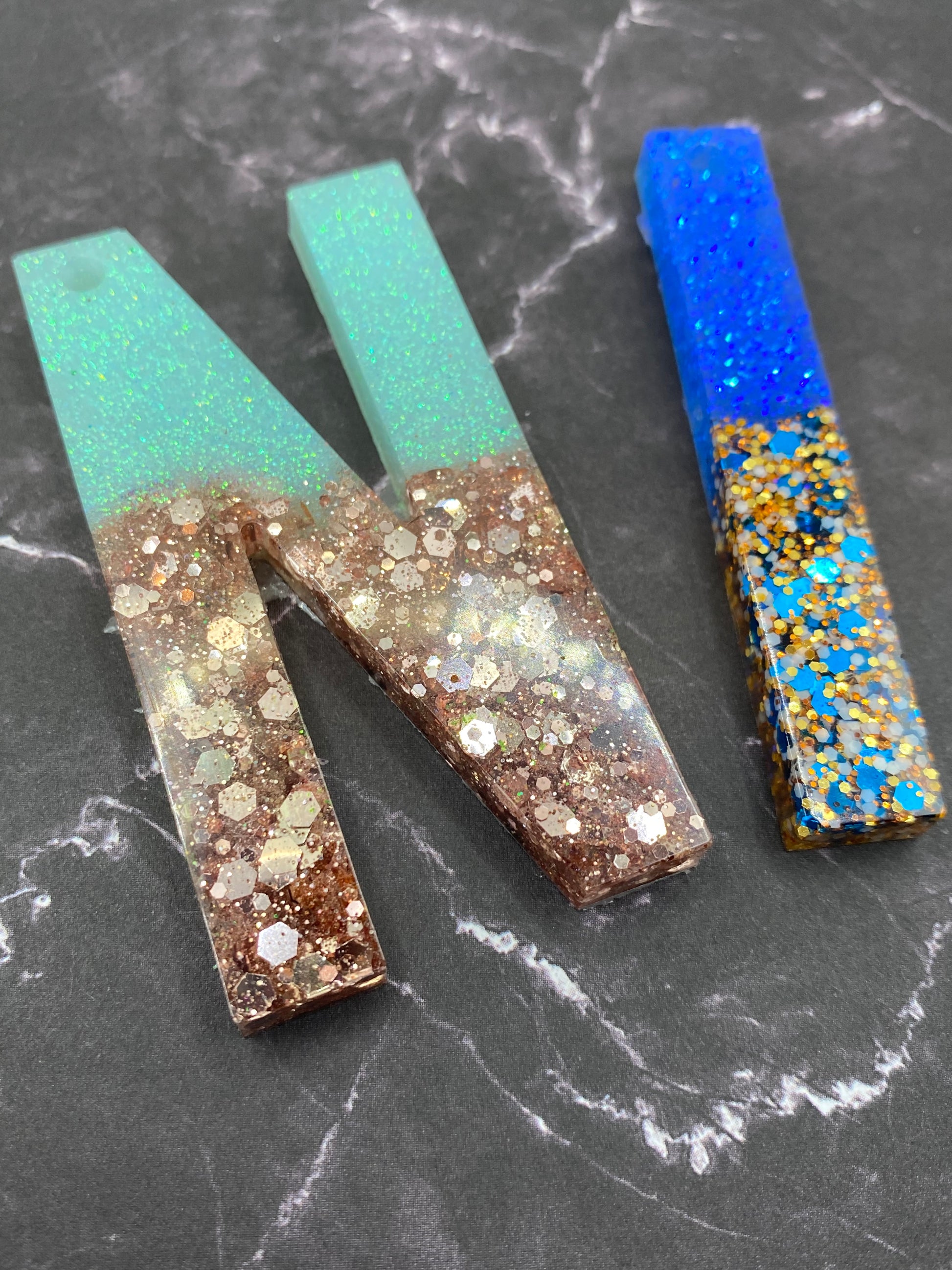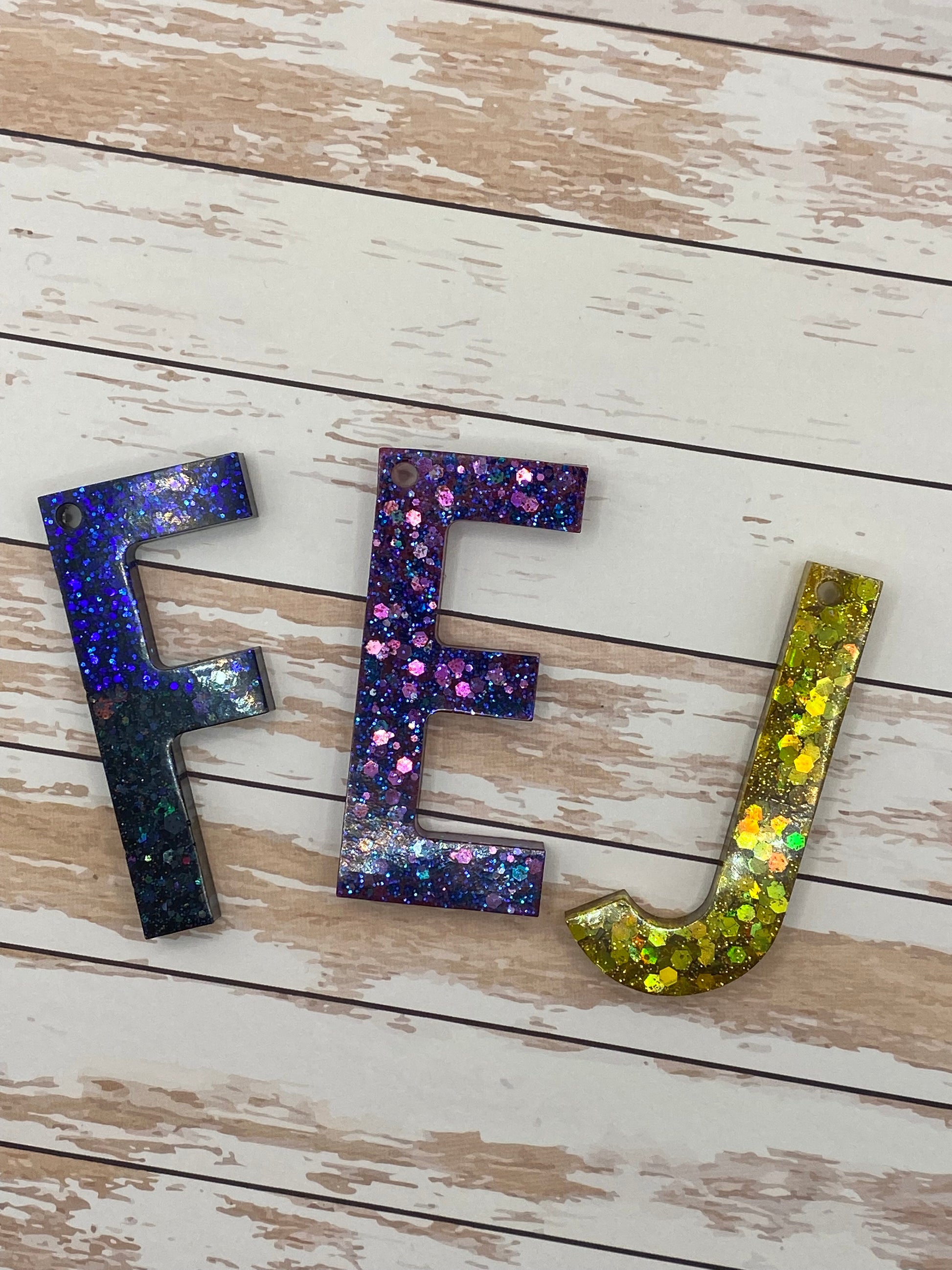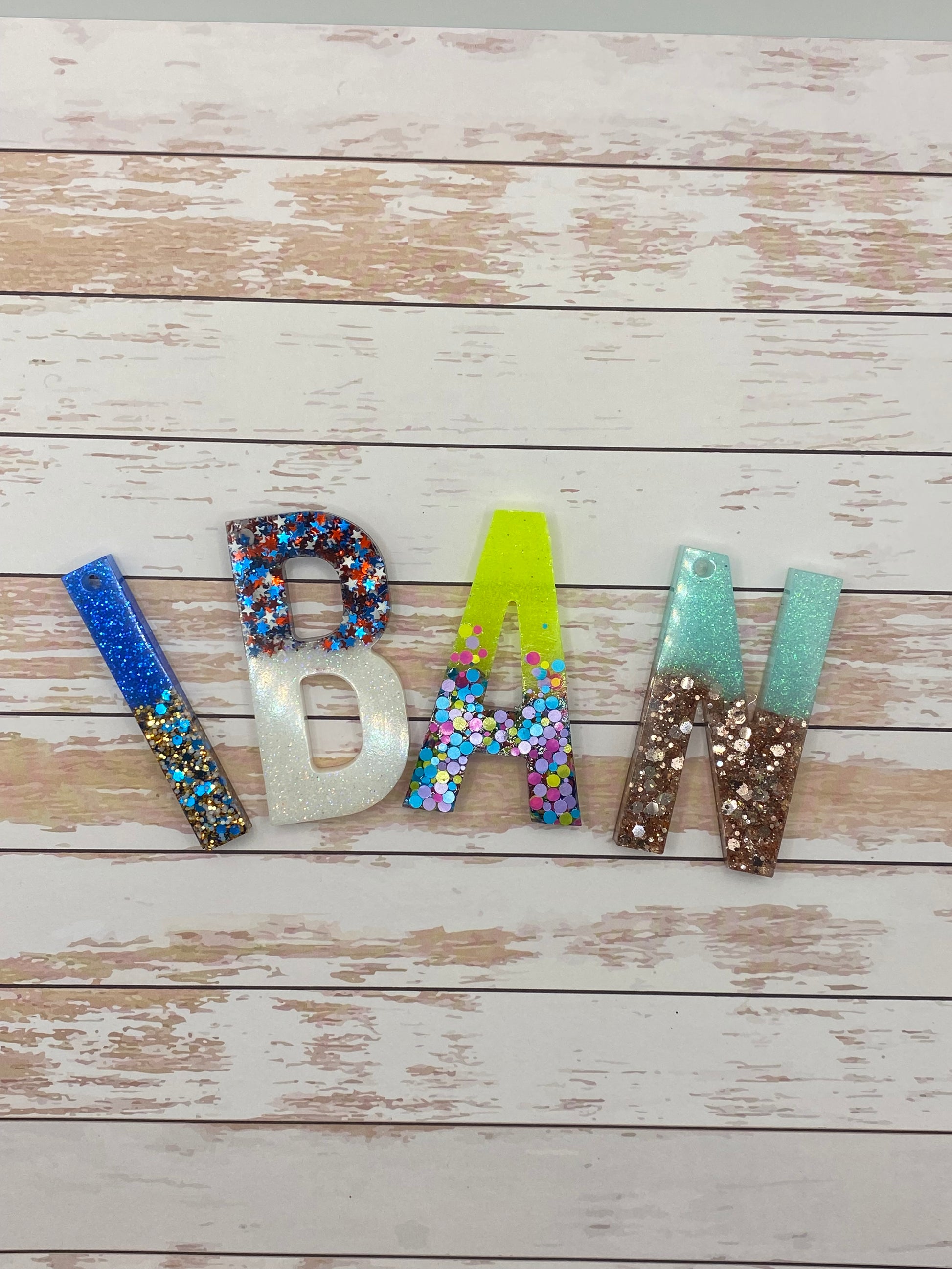 Made with durable resin , these letter keychains are customized with your name in black vinyl