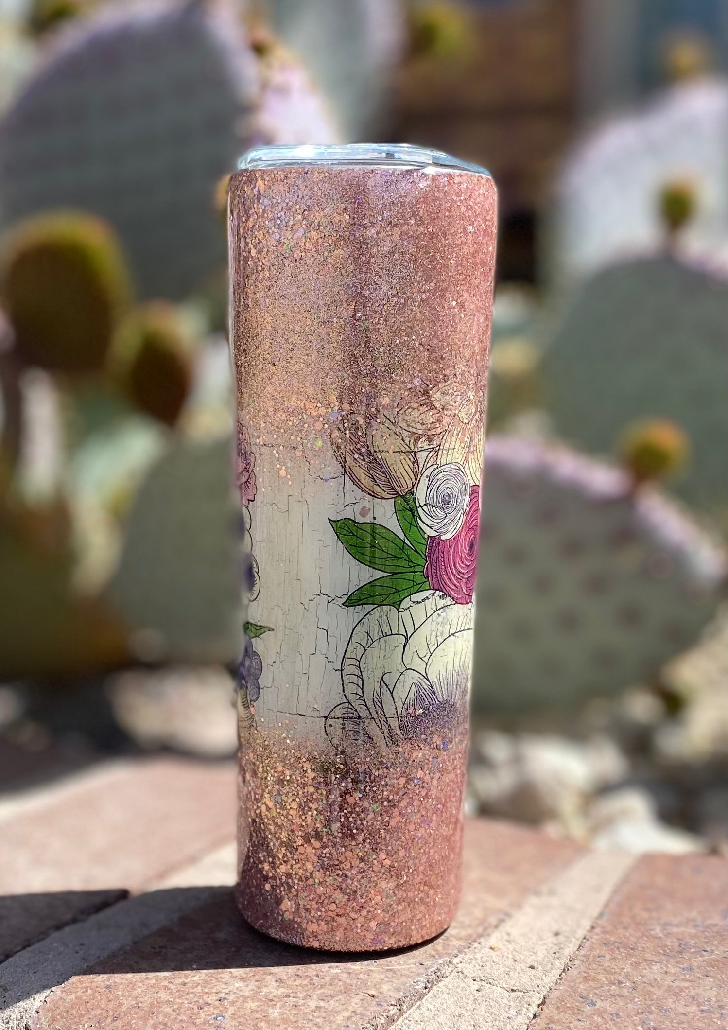 Crafted with meticulous attention to detail, our tumbler features a rustic rose gold finish that emanates a sense of vintage allure. The lustrous tones and textured surface create a stunning visual effect, making this tumbler a true standout accessory.