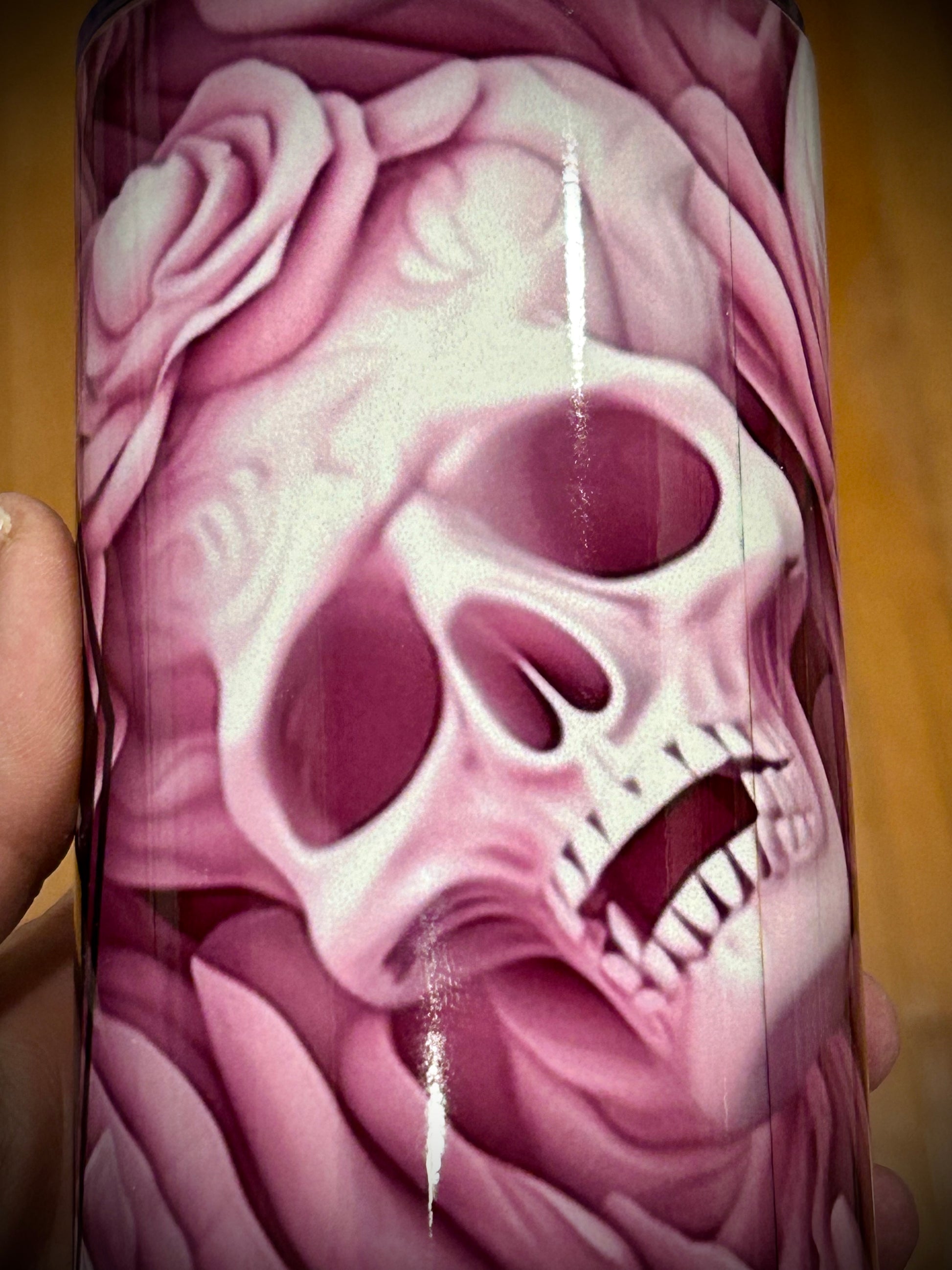 Embrace spooky bitch season with this 20oz stainless steel Tumbler featuring a sublimated image of a beautiful pink floral skull design. Perfect for sipping on your pumpkin spice latte and declaring the end of hot girl summer. Get yours now!