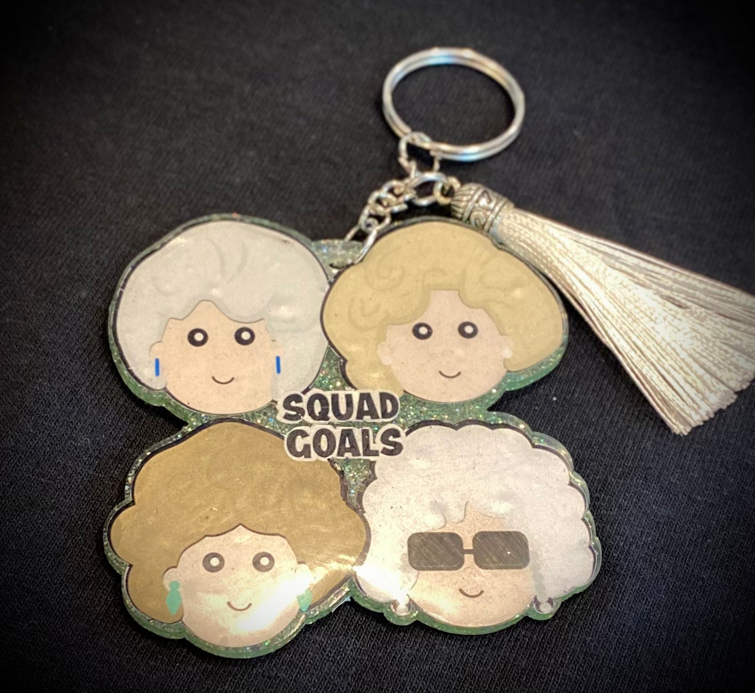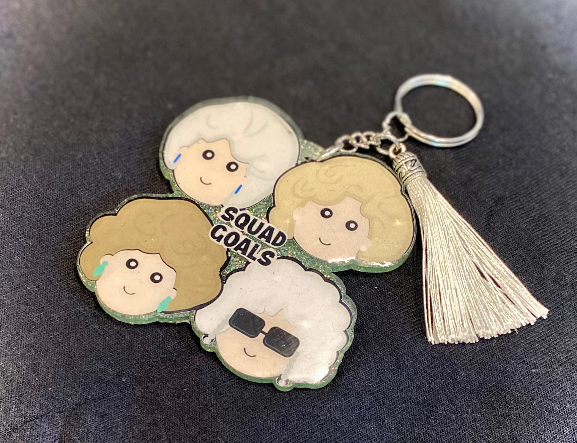With “Squad Goals” boldly written across the keychain, it serves as a daily reminder of the importance of friendship, laughter, and the joy of being part of a tight-knit group. Whether you’re a fan of Dorothy’s wit, Blanche’s vivaciousness, Rose’s innocence, or Sophia’s sassy remarks, this keychain celebrates the dynamic and unforgettable bond shared by these remarkable women.