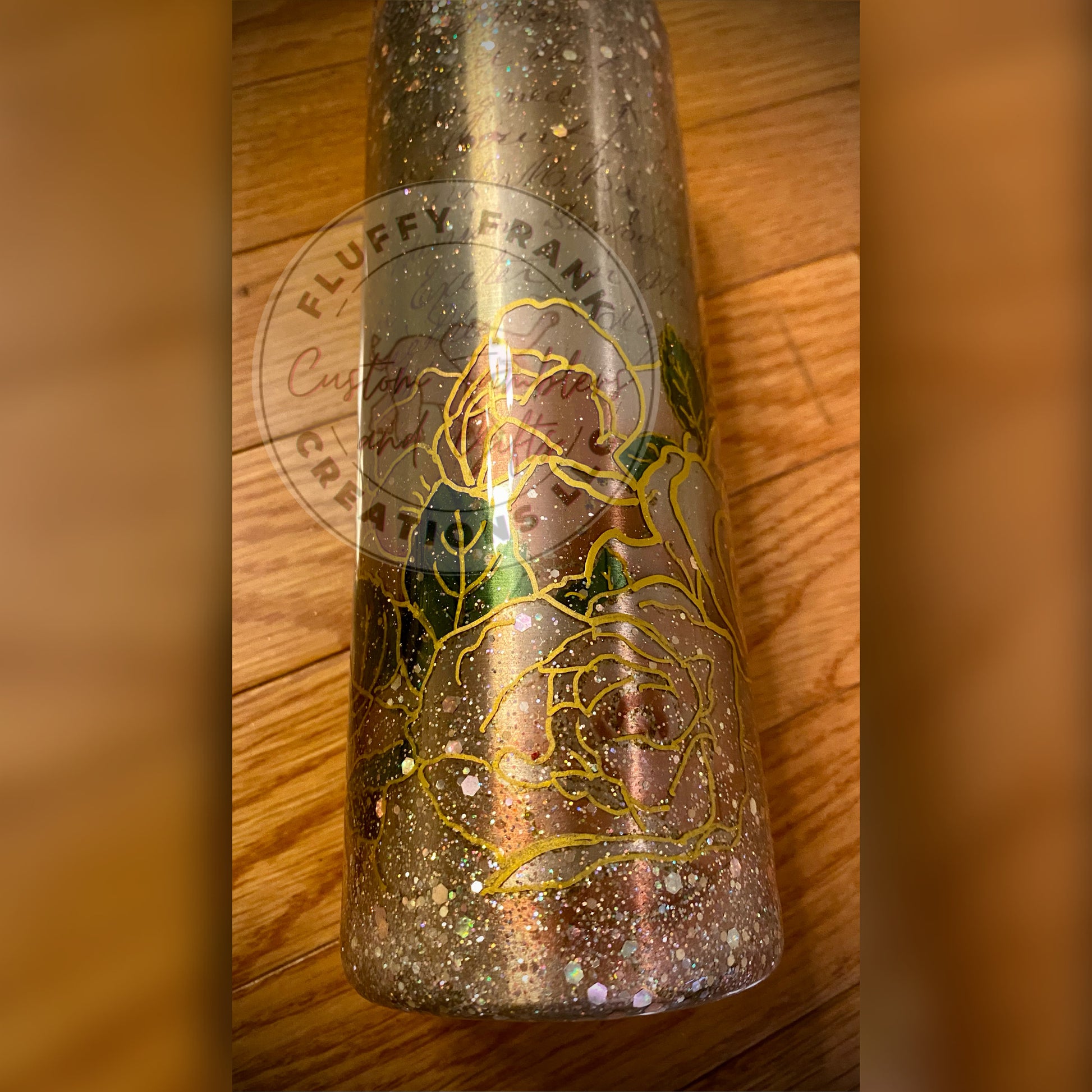 With its classic stainless steel exterior, our tumbler exudes timeless elegance. But what sets it apart is the delicate infusion of rose gold and pink glitter accents, adding a touch of glamour to its design. Tumbler features a meticulously hand-outlined rose image in radiant gold, creating a beautiful focal point that captures attention wherever you go.