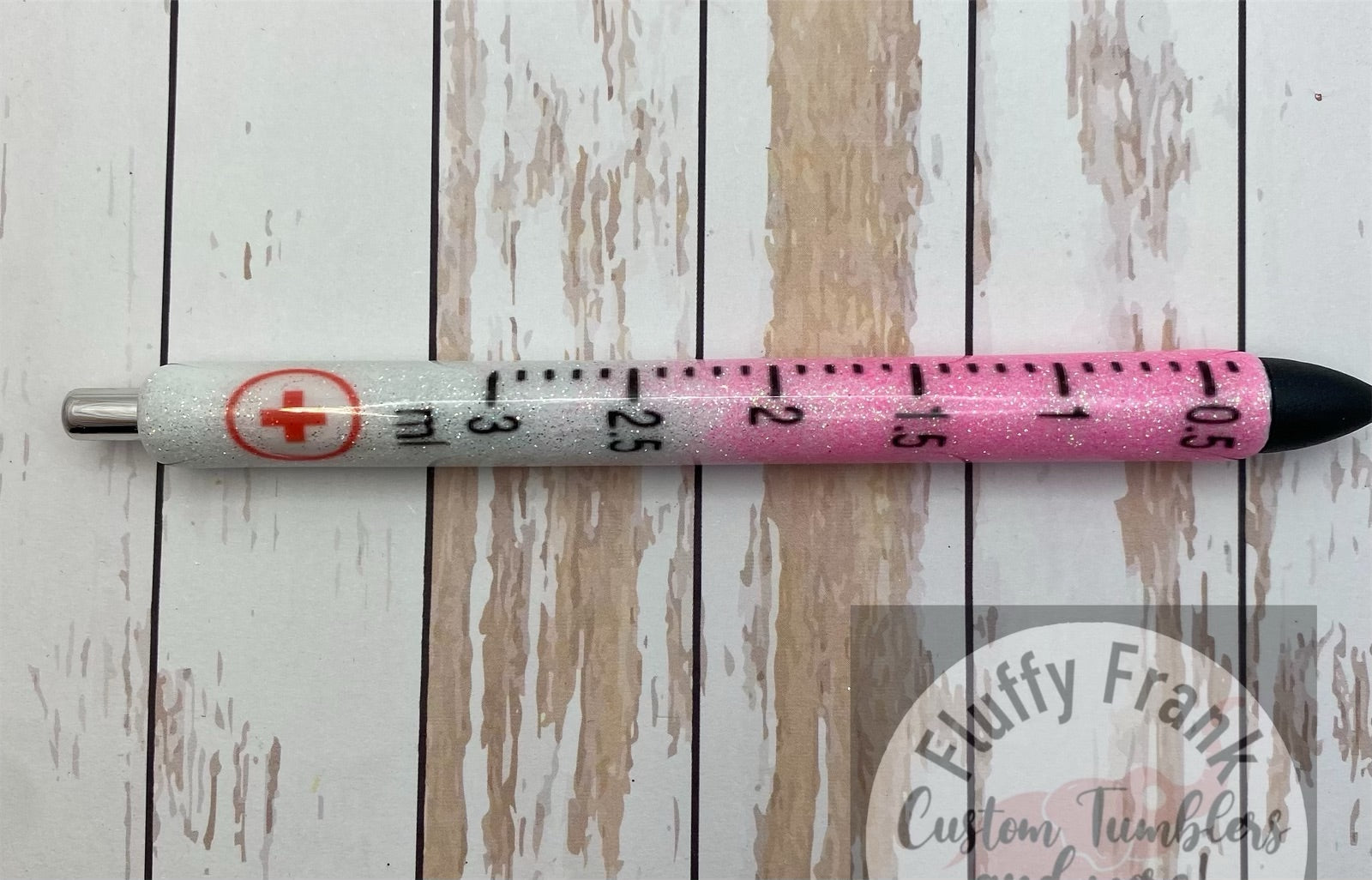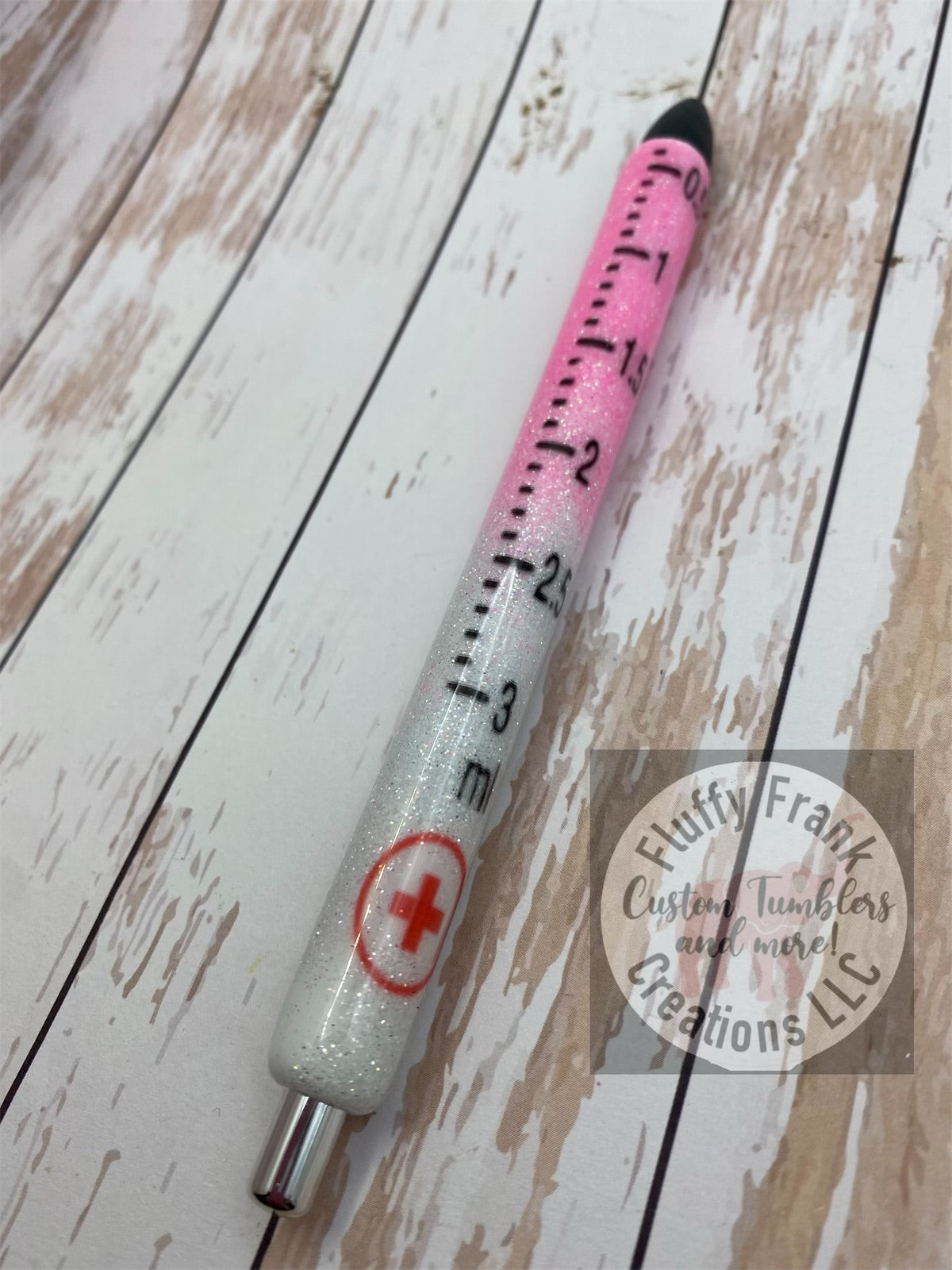 made from Inkjoy gel pens. Made to order. Top of pen done in white glitter, bottom can be done in any lighter color (dark colors will not allow decal to show well)