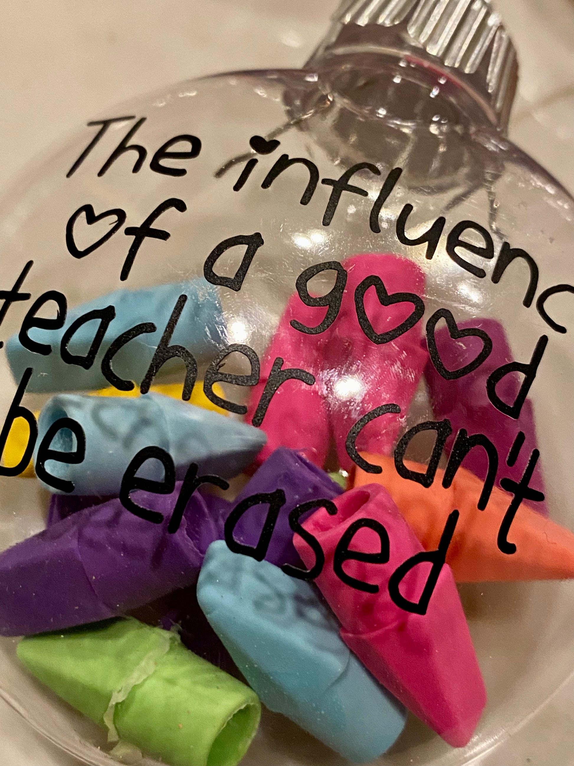 show that special teacher some love this years with theirs own eraser filled ornaments!