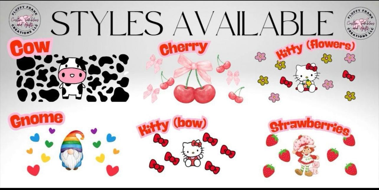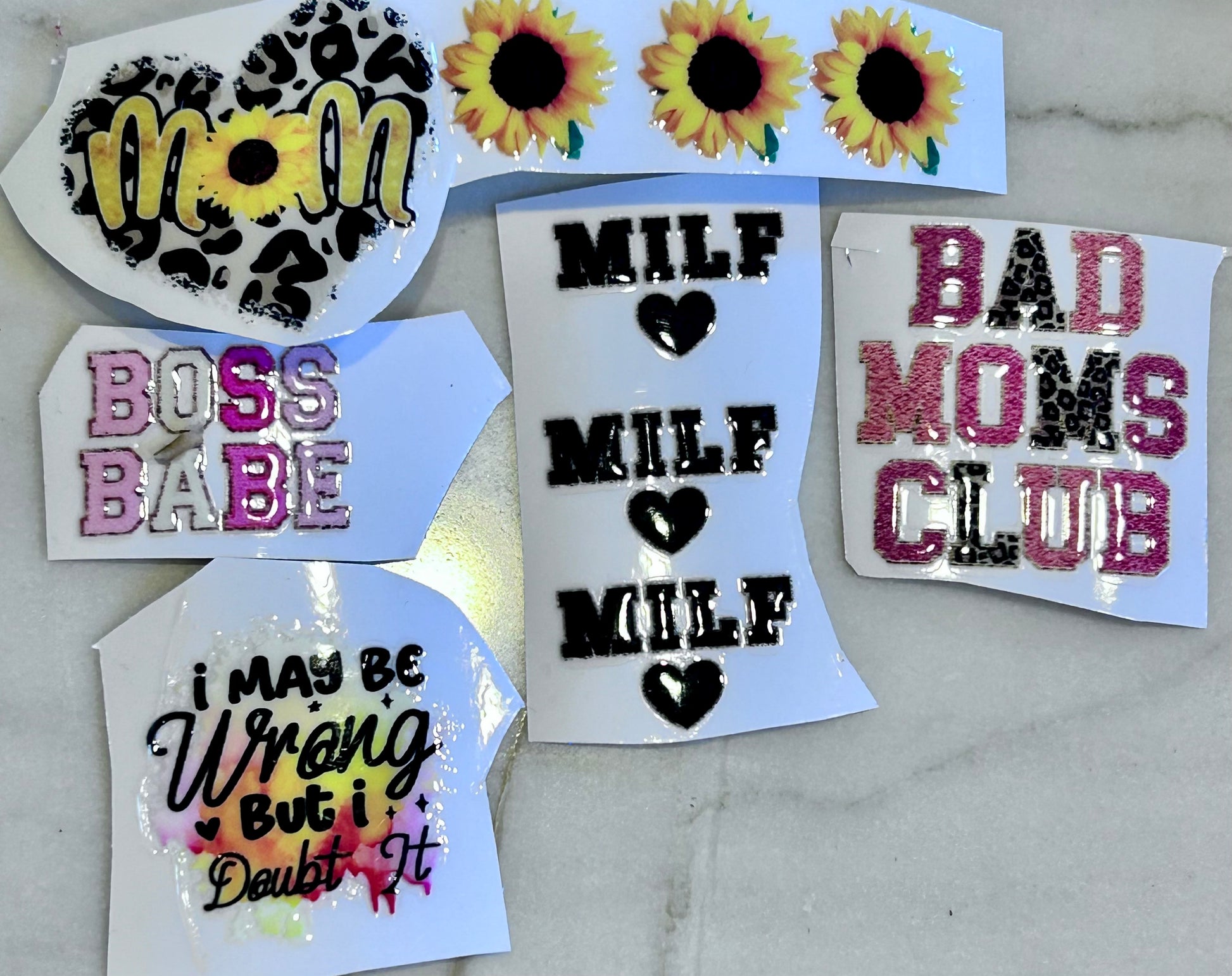 Images / decals are UVDTF. Waterproof and permanent. Please do not soak!!