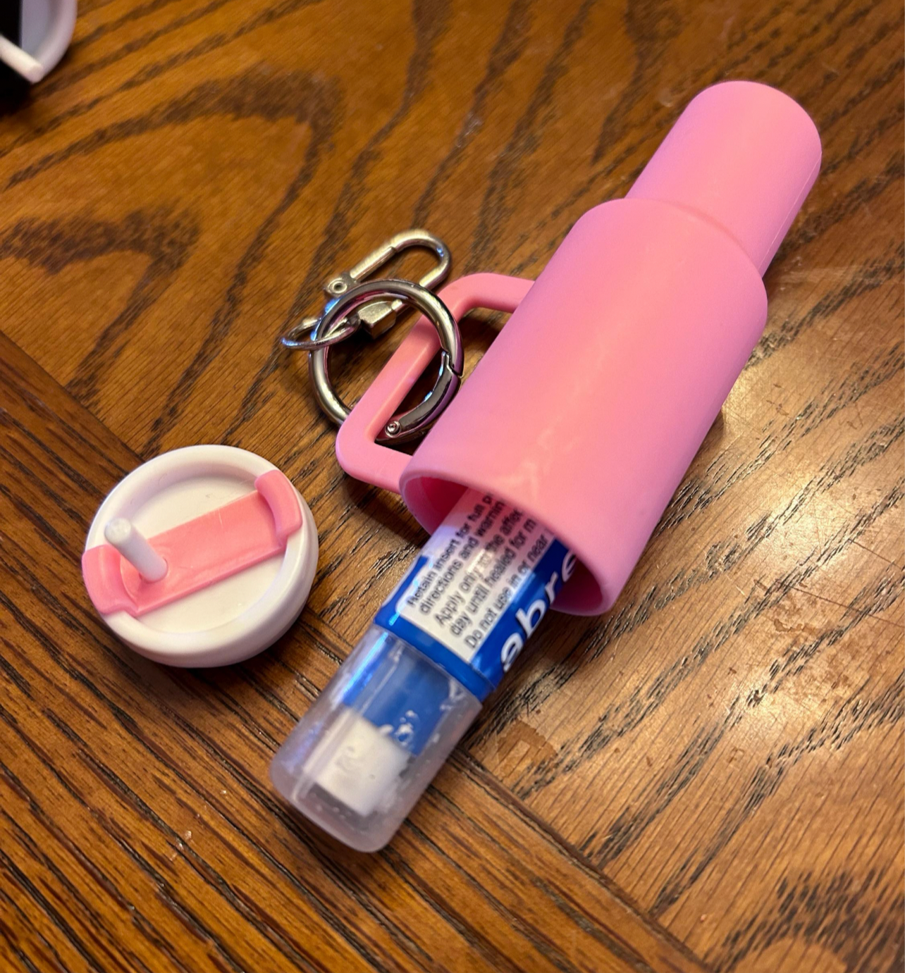 This adorable Keychain is inspired by the viral Stanley tumbler. itβs the perfect accessory for any bag or set of keys. Made of durable PVC, it's large enough to hold a full tube of Chapstick or lip balm, making it perfect for on the go. It can also be used to carry small pills, change, or other essentials.