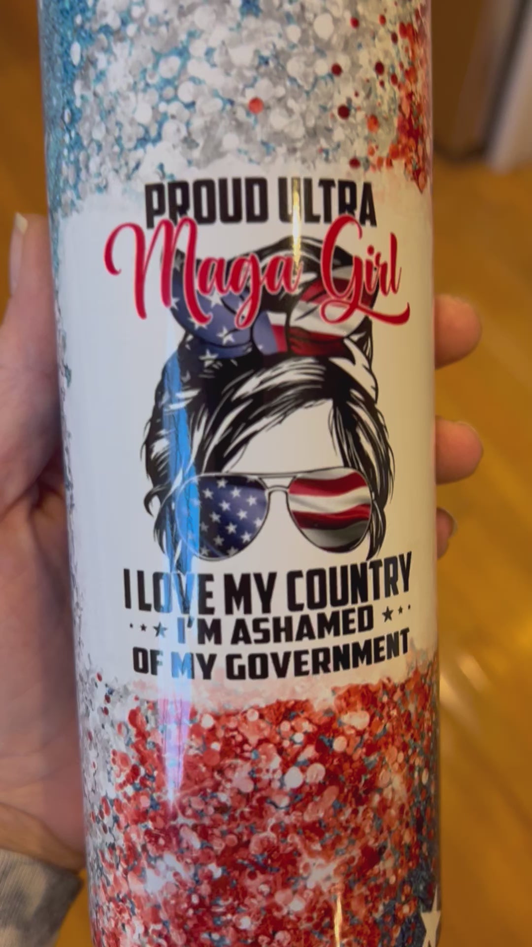 Not only does it offer the practicality of double-walled insulation for your hot and cold beverages, but it also makes a bold statement with its sublimated design featuring the powerful saying, ‘Proud Ultra Maga Girl - I Love My Country, I’m Ashamed Of My Government.’
