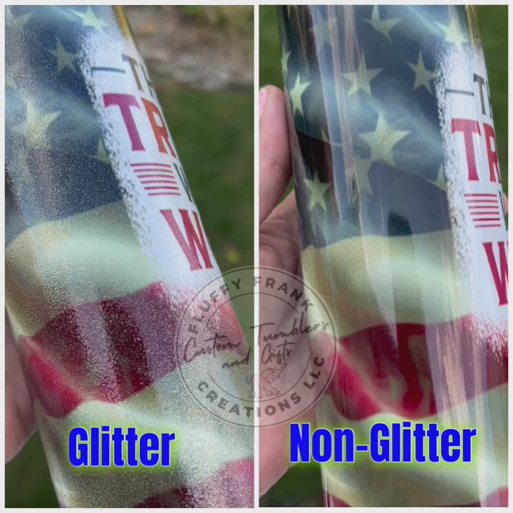 Show your love for America with this sleek and stylish 20oz stainless steel tumbler. The bold, patriotic design is available in both glitter and non-glitter finishes. Keep it classy and sleek, or add a touch of sparkle!!!