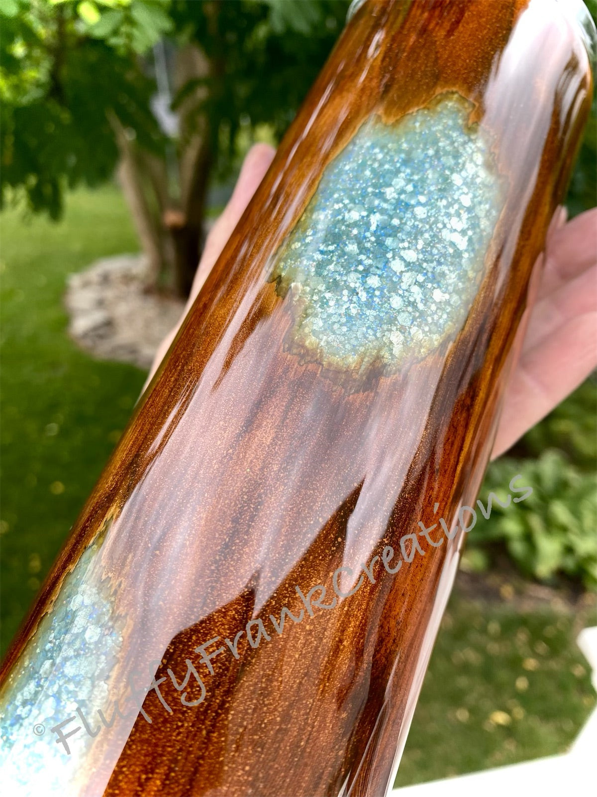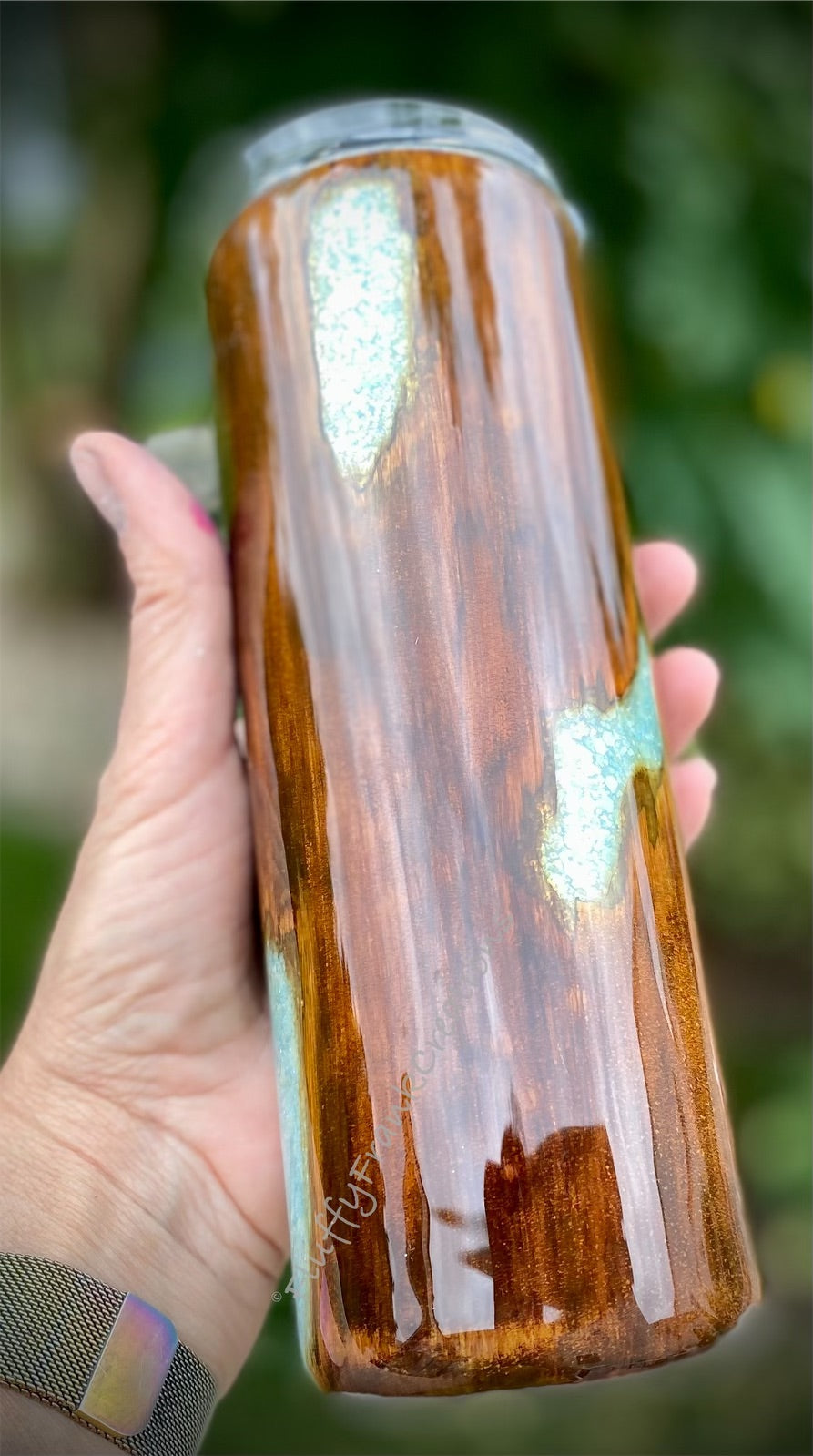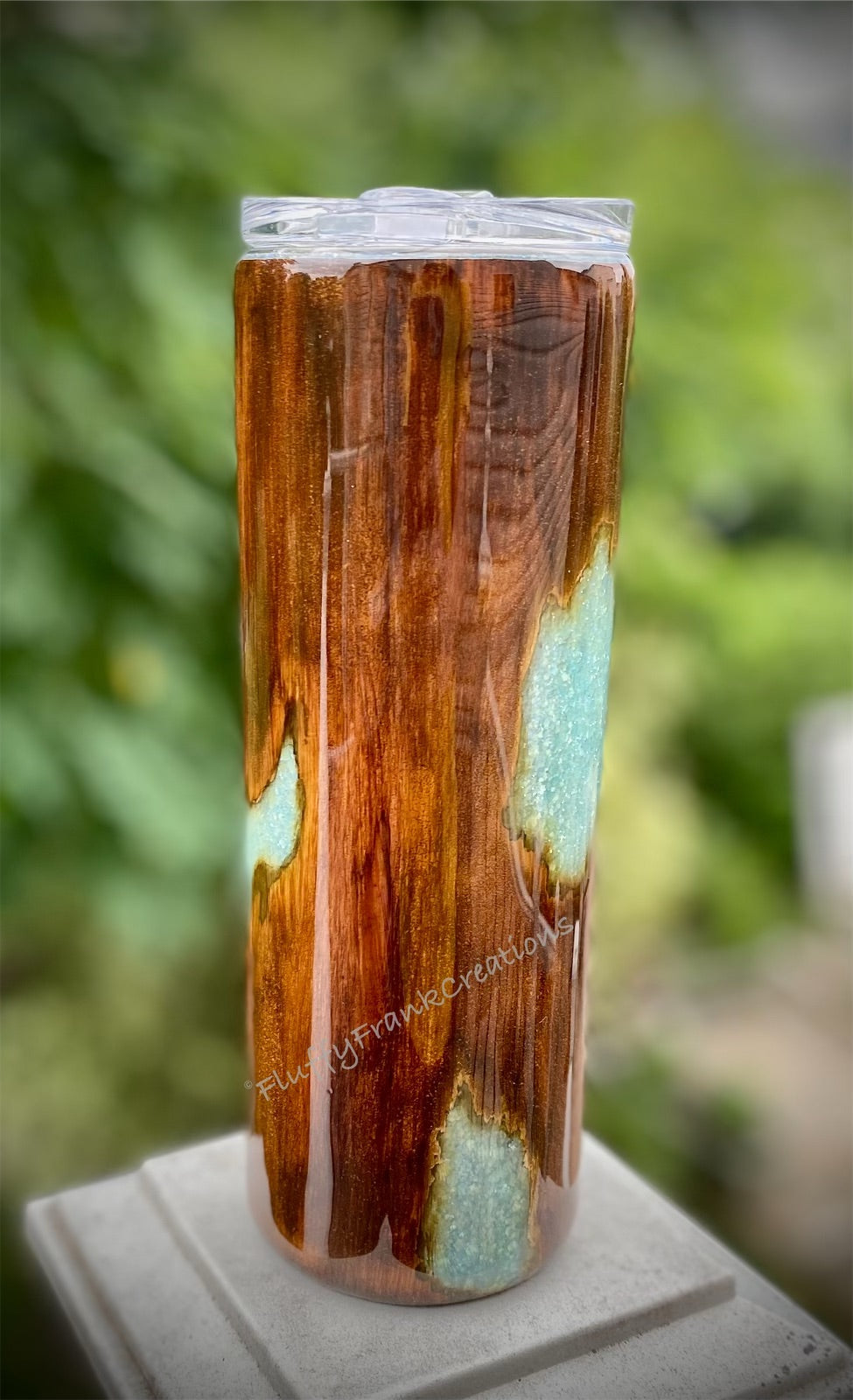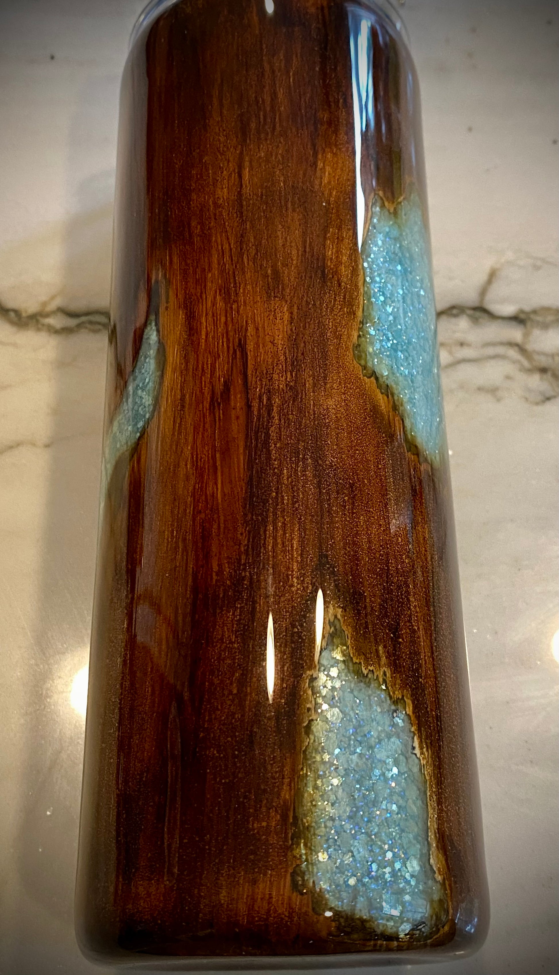 20-ounce Skinny tumbler woodgrain / geode . Hand-painted with a captivating wood grain finish, evoking a sense of natural beauty and elegance.